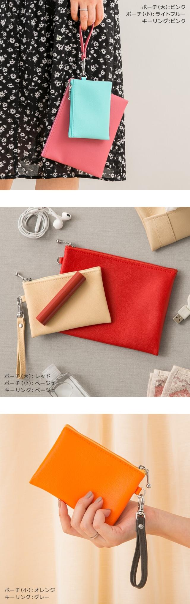 色が選べる ポーチ2個セット「POBLE」日本製 キーリング付き 抗菌 撥水 軽量 小物入れ おしゃれ 可愛い 小さい 化粧ポーチ 旅行 送料無料 レディース メンズ イヤホン 薬 財布 シンプル マチなし ミニ PVCレザー ワイヤレスイヤホン 充電器 ギフト プレゼント 母の日