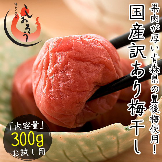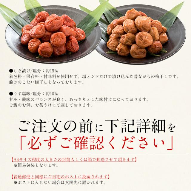 梅干し 訳あり つぶれ梅 300g しそ漬け うす塩 2種類から選択 国産 規格外[同梱不可・代引不可・ゆうパケット] ギフト プレゼント お歳暮