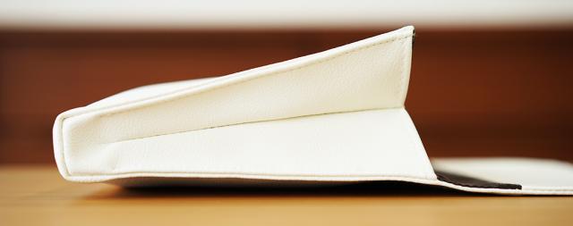 厚みが底から徐々に広がっていくデザイン。収納が多くてもしっかり入り、少ない時は薄く閉じるように作られています。