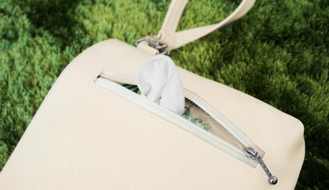 おむつポーチを開くことなく、表面のファスナーから簡単に取り出すことができます、便利!