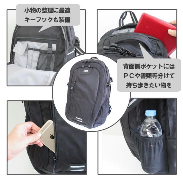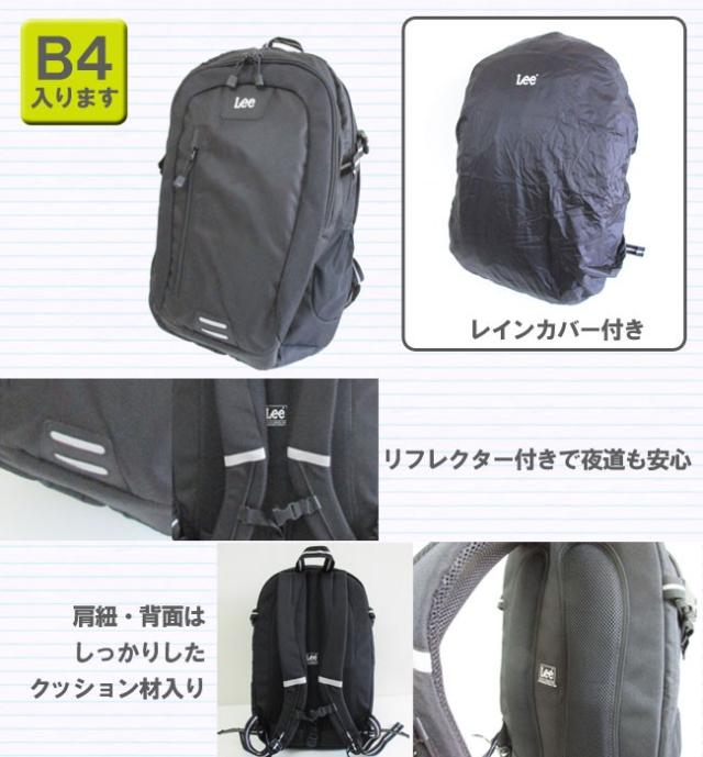 Lee リー リュック 大きめ レインカバー 黒 サイドポケット 通勤 通学 雨 カバー