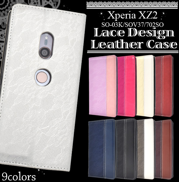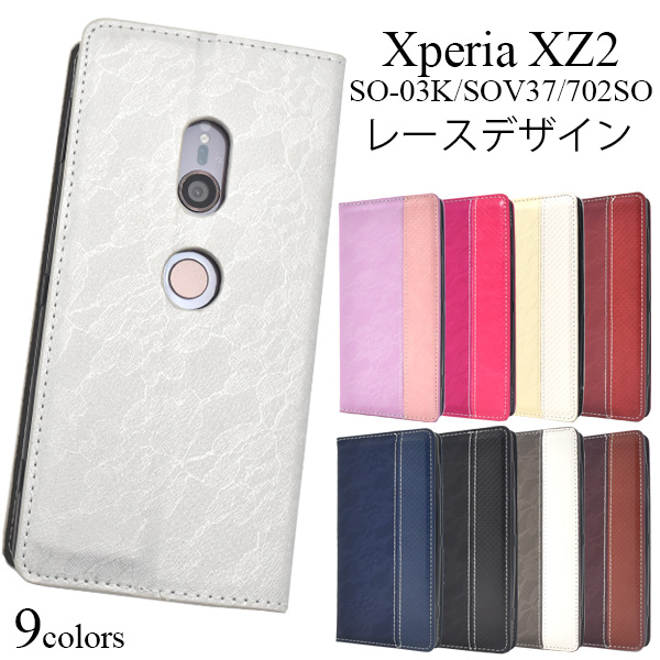 スマホケース 訳あり アウトレット Xperia XZ2 SO-03K SOV37 702SO用 手帳型 レースデザイン レザーケース おしゃれ 可愛い 携帯カバー 上品 ベルトなし スマホカバー 携帯ケース au携帯カバー フェミニン クラシカル