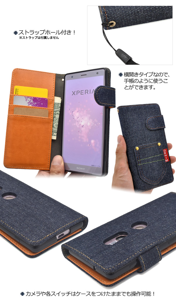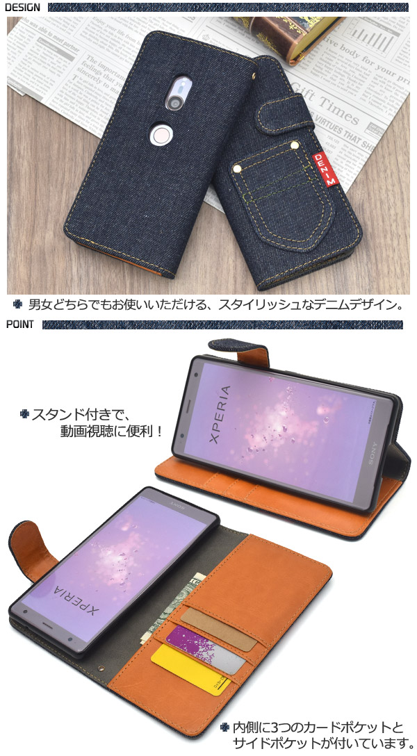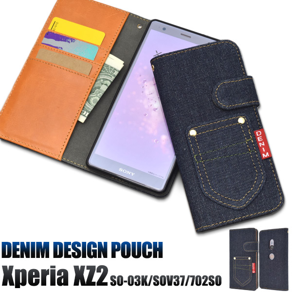 スマホケース Xperia XZ2 SO-03K SOV37 702SO用 手帳型 デニムデザイン 携帯カバー シンプル 可愛い おしゃれ 携帯ケース デニムケース キズ防止 汚れ防止 スマホカバー 装着簡単 可愛い おしゃれ denimケース 保護カバー auスマホ au携帯カバー 人気 定番