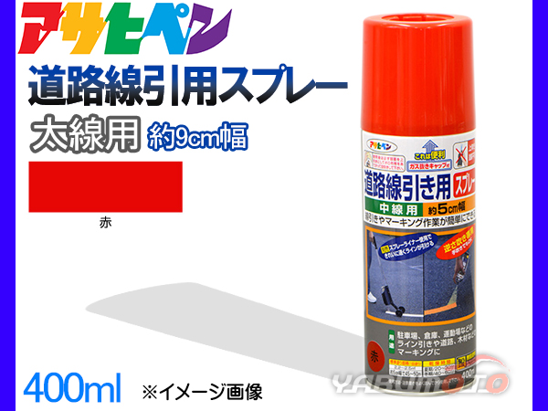 アサヒペン 道路線引き用スプレー 400ml 赤 太線用 約9cm ツヤ消し 不透明 屋内 屋外 塗装 塗料 DIY 駐車場 倉庫 マーキング
