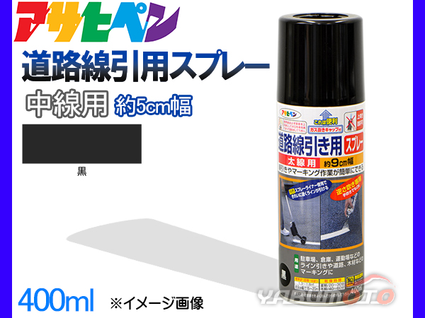 アサヒペン 道路線引き用スプレー 400ml 黒 中線用 約5cm ツヤ消し 不透明 屋内 屋外 塗装 塗料 DIY 駐車場 倉庫 マーキング