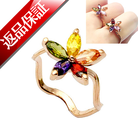 お花リング 指輪 水晶 天然石 K18 18金GP 18K 花 フラワー スワロフスキー ネコポス送料無料