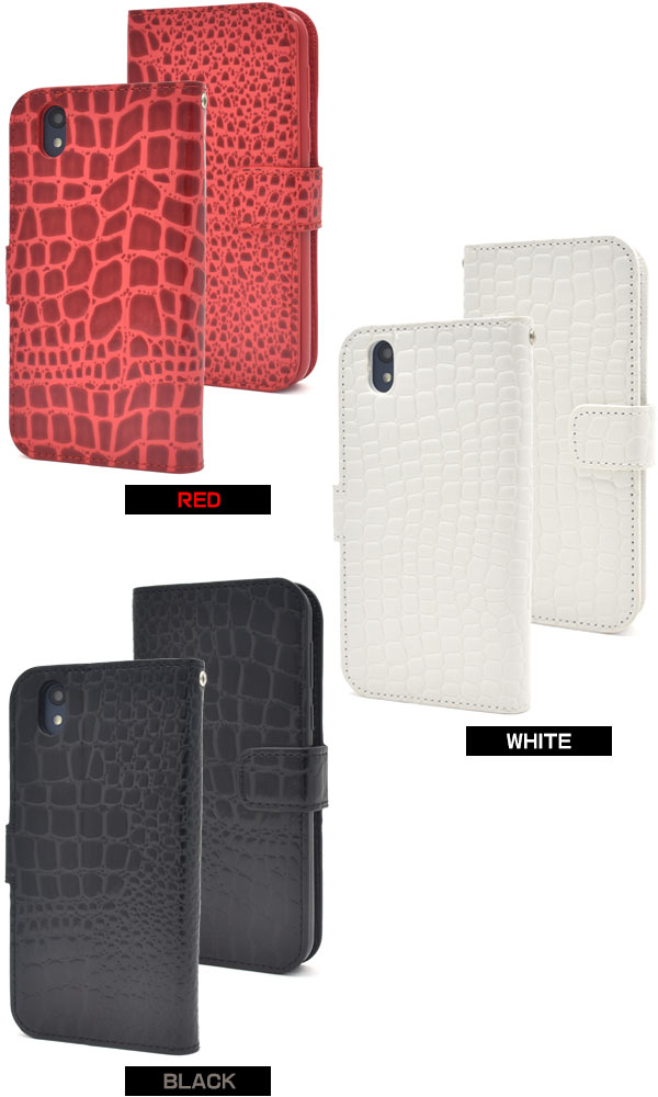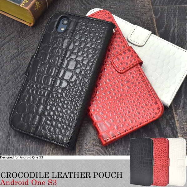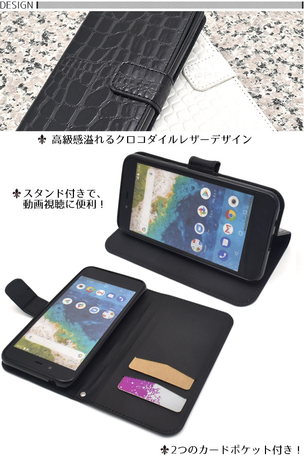 Android One S3用クロコダイルレザーデザイン手帳型ケース