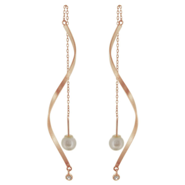 ダイヤモンド ピアス レディース ロングピアス パールキャッチ 10金