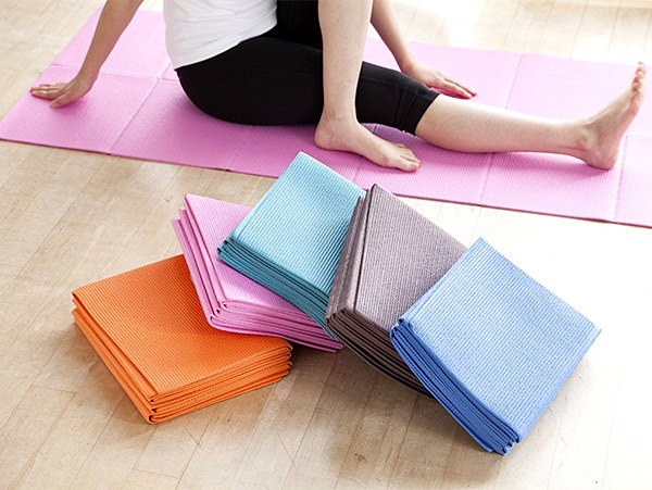 通常ヨガマットはロール状でかさばるものが多いですが、このたためるヨガマットは四角く折りたたむことができて持ち運びにとっても便利!持ち運びしやすいから会社や学校帰りにスタジオに通いやすいです。別売りのヨガ専用タオルもマットと同じカラーバリエーションがあるので、コーディネートして使うのもおすすめです。