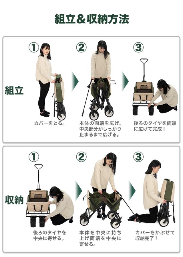 キャリーカート キャリーワゴン 耐荷重120キロ 折りたたみ式 コンパクト収納 お出掛け キャンプ 防災