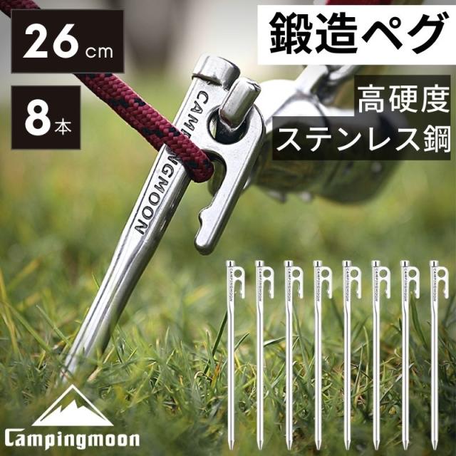 キャンピングムーン(CAMPING MOON) マルテンサイト系ステンレス鋼420J 焼き入れ 鍛造ペグ R-26シリーズ パワーペグ 固い地面に最適 R-26-8P