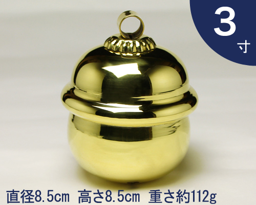 本坪鈴 3寸 直径8.5cm 高さ8.5cm 重さ約112g 参考商品 / 神具 神棚 神社 稲荷宮 鈴 すず スズ 真鍮製 しんちゅう 国産 京都製