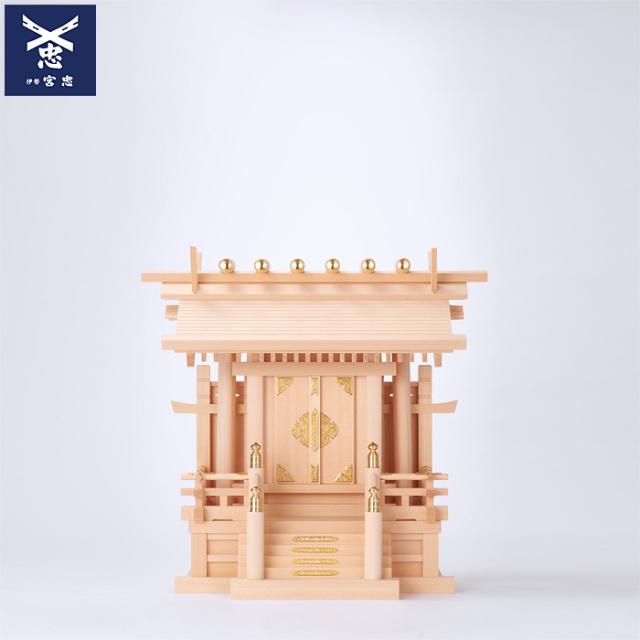 棟持柱(むなもちばしら)をつけることにより、どっしりと重厚感あふれるお社になります。