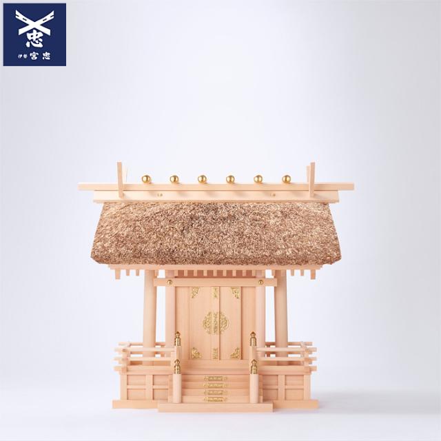 『神と心のあいだに 伊勢宮忠』幸せを祈る人々の思いを受け止めるにふさわしい神棚を伊勢神宮のお膝元で造り続けて80年 神棚・神具の専門店伊勢宮忠の茅葺神棚 神棚 高級天然木曽桧 神明造り 伊勢 宮忠 神宮 国産 神棚 神具 ブランド 檜(ひのき) 官材 ヒノキ 茅葺(かやぶき) 萱葺 製造直売 メーカー 開店 新築