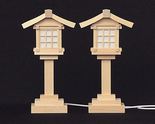 神殿の両脇に配置し、お参りいただくときや、日が暮れ、辺りが暗くなったら点灯し、お休み前に消灯してください。