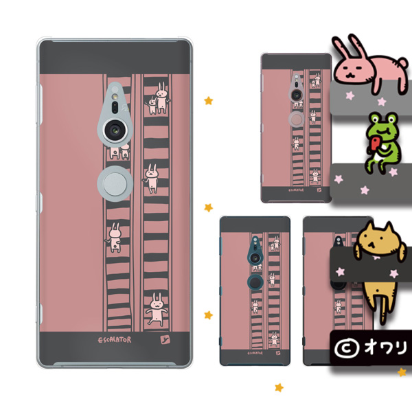 Xperia XZ2 (docomo SO-03K / au SOV37 / SoftBank 702SO) スマホ ケース カバー オワリ 「エスカレーターとウサギ」 ピンク