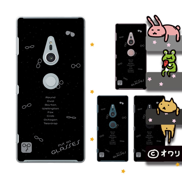 Xperia XZ2 (docomo SO-03K / au SOV37 / SoftBank 702SO) スマホ ケース カバー オワリ 「イロイロメガネ」 ブラック