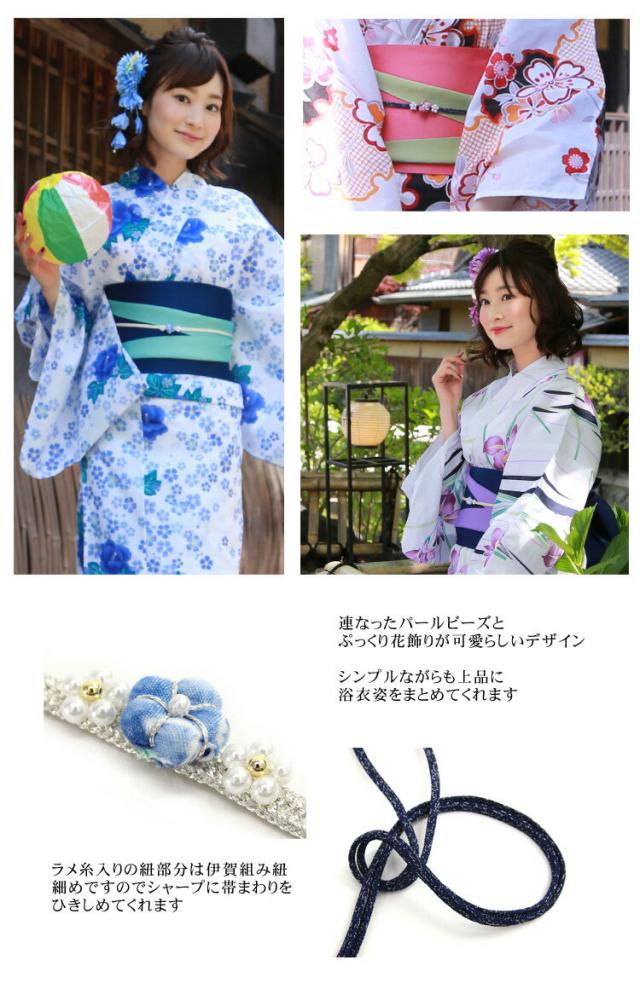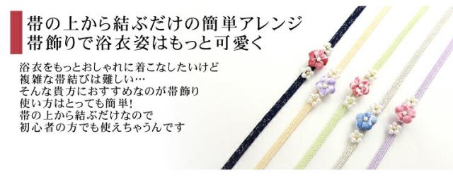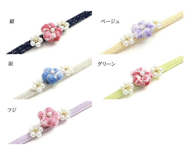 帯飾り 日本製 伊賀組み紐 帯飾り 帯〆「ぷっくり花飾りとパールフラワー」浴衣 帯飾り 帯締め 帯紐 帯留め 可愛い 飾り紐