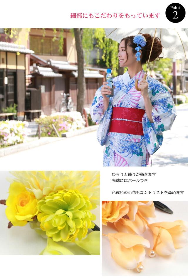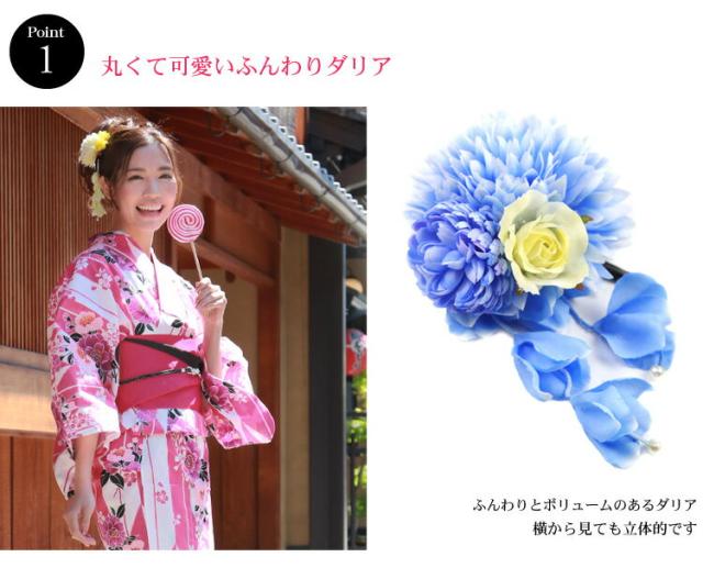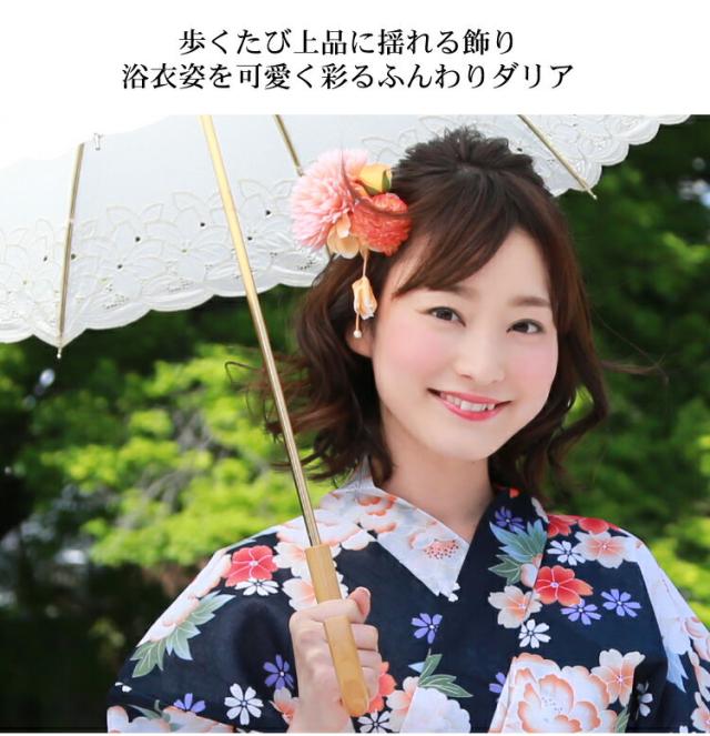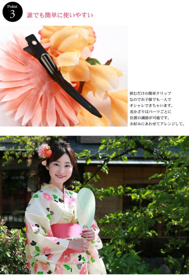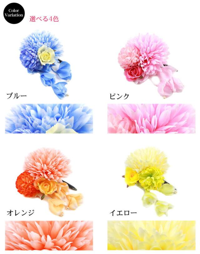 浴衣 髪飾り クリップ「下がりタイプ ダリア花づくし髪飾り」花 大人 ヘアアクセサリー 4色 浴衣 夏祭り 花火大会