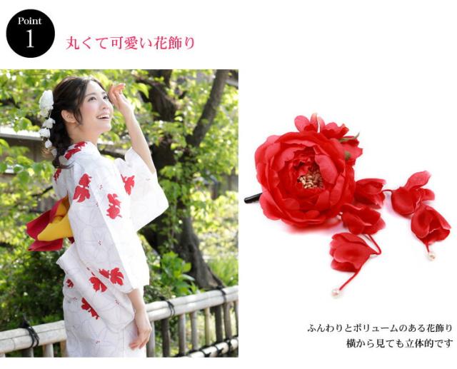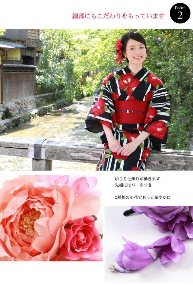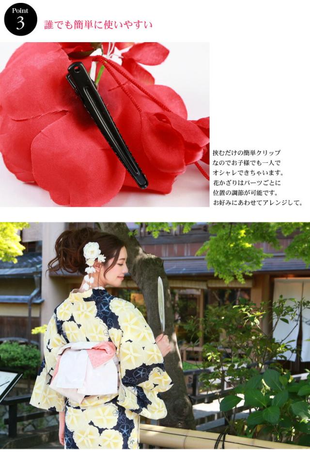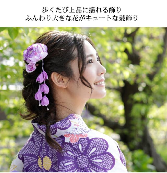 浴衣 髪飾り クリップ「下がり花タイプ 小花と花」花 大人 ヘアアクセサリー 4色 浴衣 夏祭り 花火大会