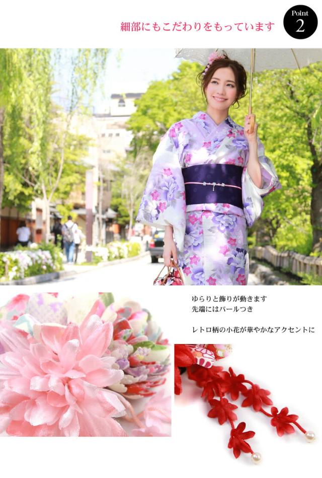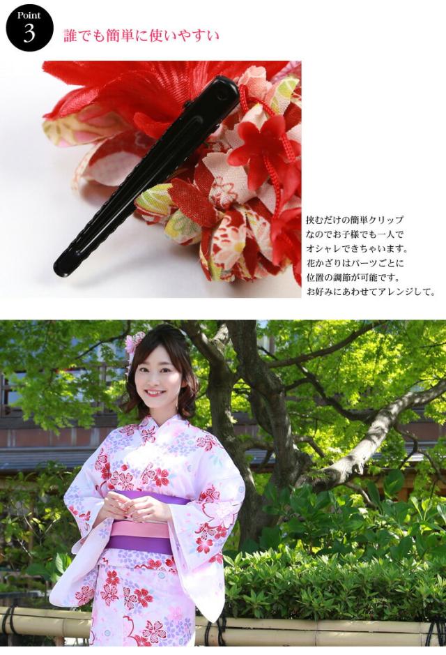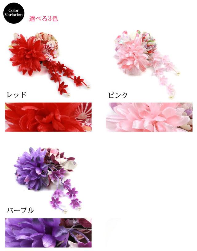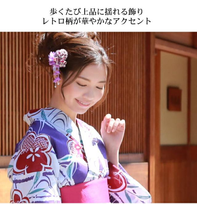 髪飾り 「なでしこ」浴衣 髪飾り クリップ「下がりタイプ レトロ柄使い髪飾り」花 大人 ヘアアクセサリー 3色 浴衣 夏祭り 花火大会