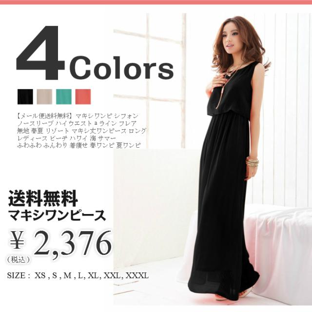 送料無料 マキシワンピース ロングワンピース シフォン ノースリーブ Aライン フレア 無地 春夏 リゾート レディース ビーチ