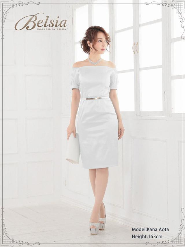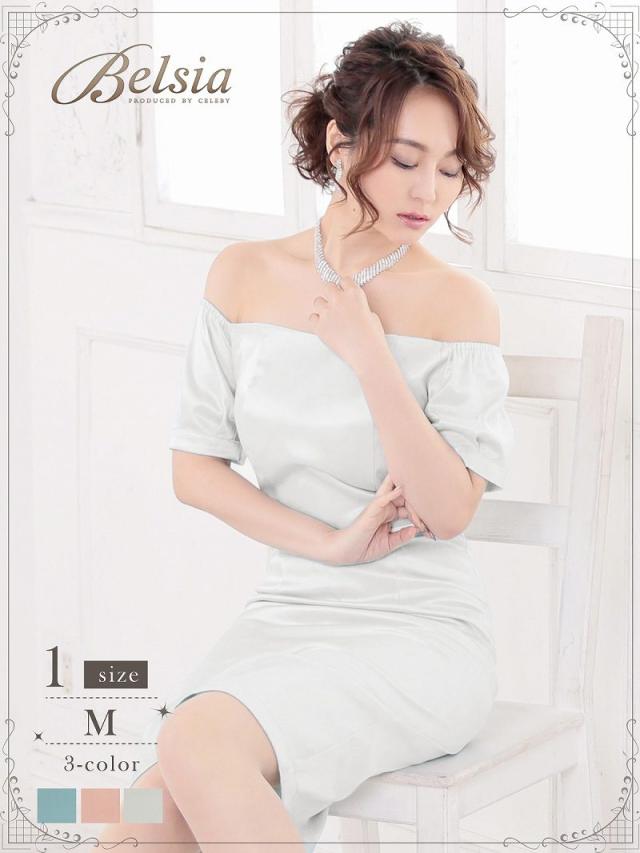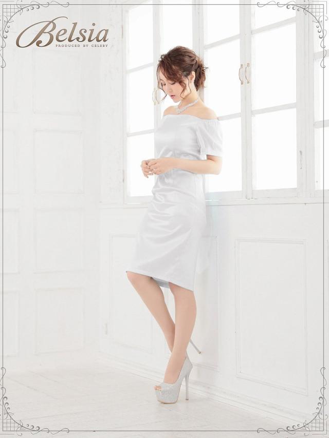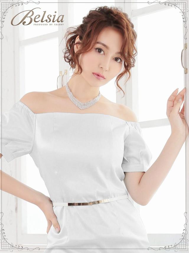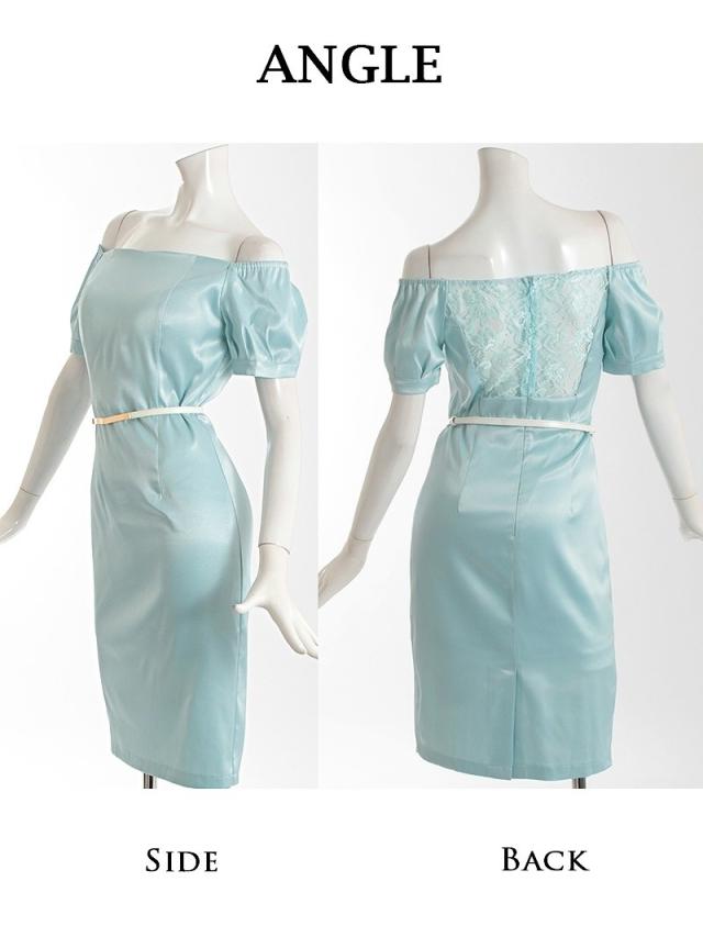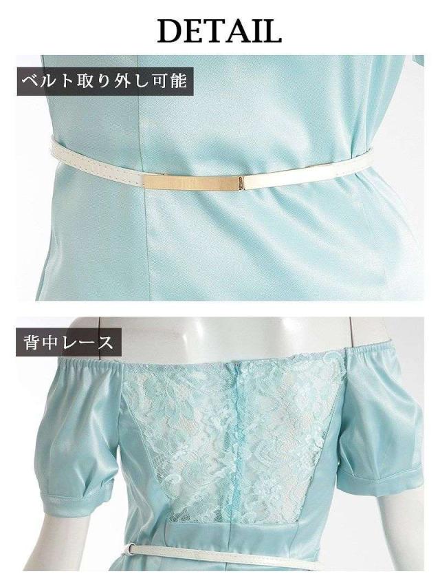 ☆肌触り滑らかで着心地が良いサテン膝丈ドレスはベルト付きなのでウエストを細魅せしてくれるキャバドレス。