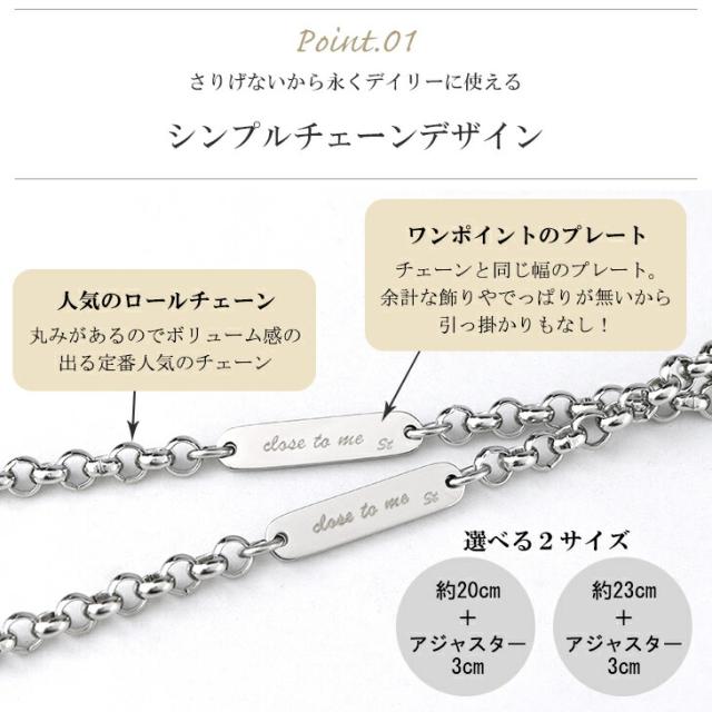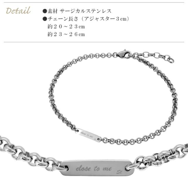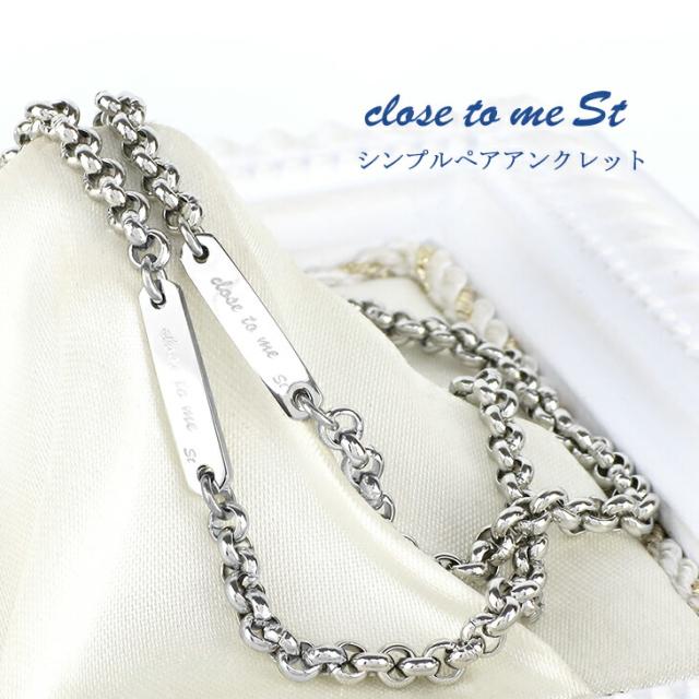刻印無料 close to me ロールチェーン プレート ステンレス ペア アンクレット カップル ペアアクセサリー サージカルステンレス 2本セット ブランド