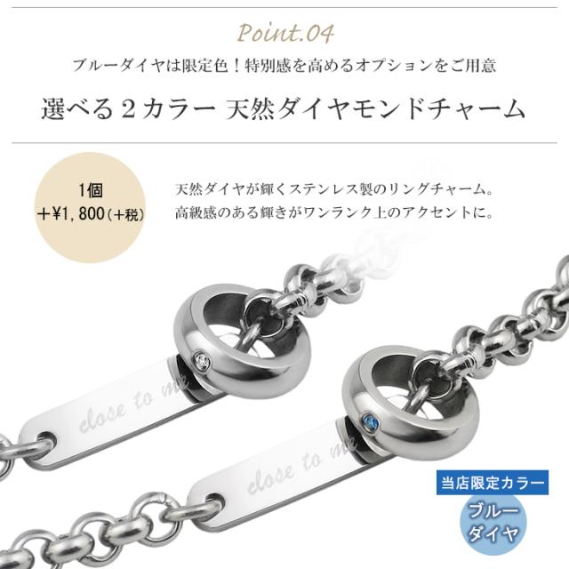ひとつ+1,800円(税別)で天然ダイヤモンド付きチャームをセットでご購入いただけます。
