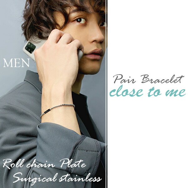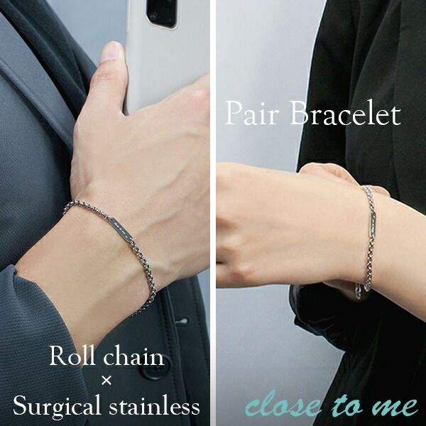 刻印無料 close to me ロールチェーン プレート ステンレス ペアブレスレット ペアアクセサリー サージカルステンレス ブレスレット ペアブレスレット 2本セット ブランド