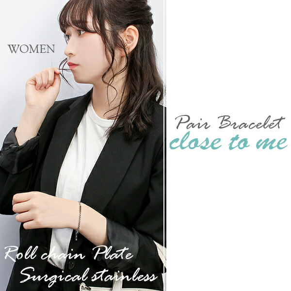【close to me】ロールチェーン プレート ステンレス ペアブレスレット