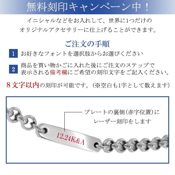 ※ご希望の刻 印文字は商品をお買い物かごに入れた後、ご注文ステップ時の備考欄に、メンズ・レディースそれぞれご記入下さい。