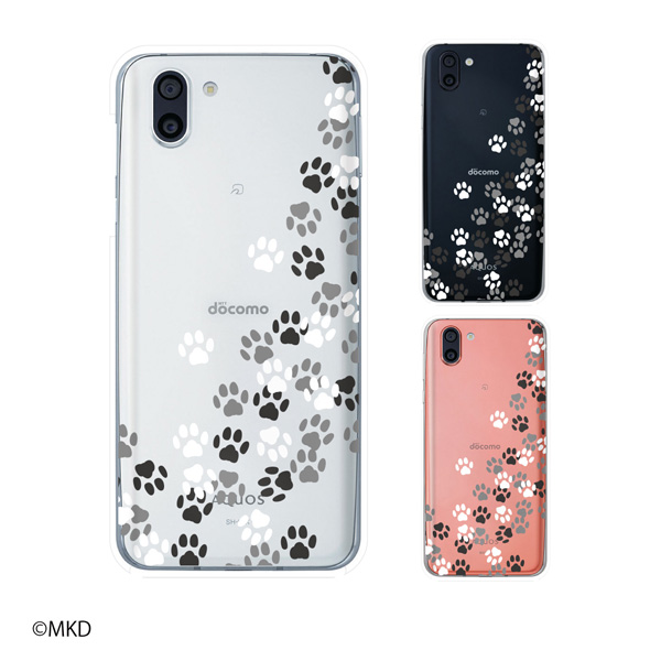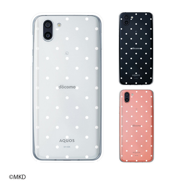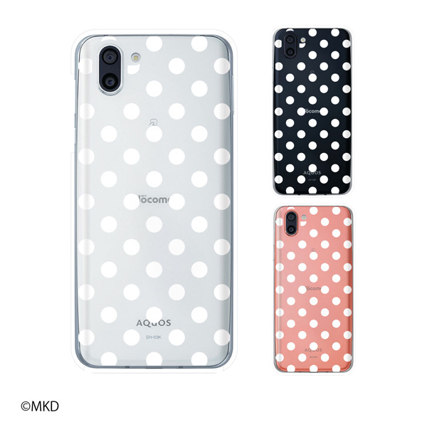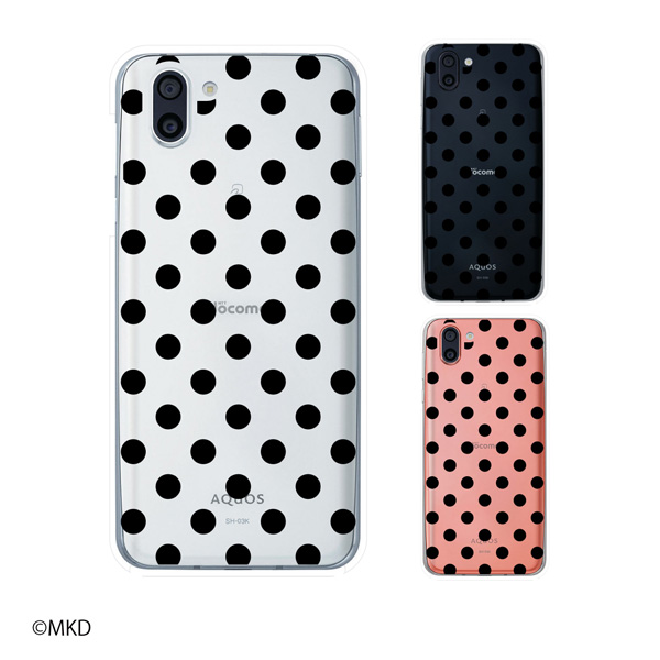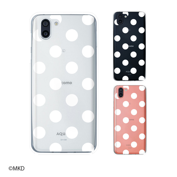 AQUOS R2 (docomo SH-03K / au SHV42 / SoftBank 706SH) スマホ ケース カバー 水玉mkd ホワイト×透明