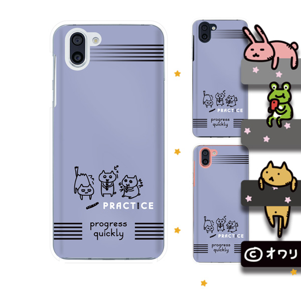 AQUOS R2 (docomo SH-03K / au SHV42 / SoftBank 706SH) スマホ ケース カバー オワリ 「ネコのリコーダー練習」 グレー