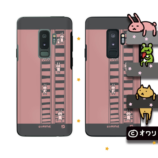 Galaxy S9+ (docomo SC-03K / au SCV39) スマホ ケース カバー オワリ 「エスカレーターとウサギ」 ピンク