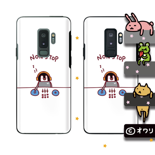 Galaxy S9+ (docomo SC-03K / au SCV39) スマホ ケース カバー オワリ 「ノンストップDJ -ペンギン-」 ホワイト