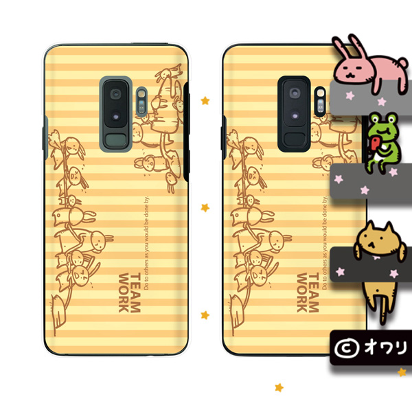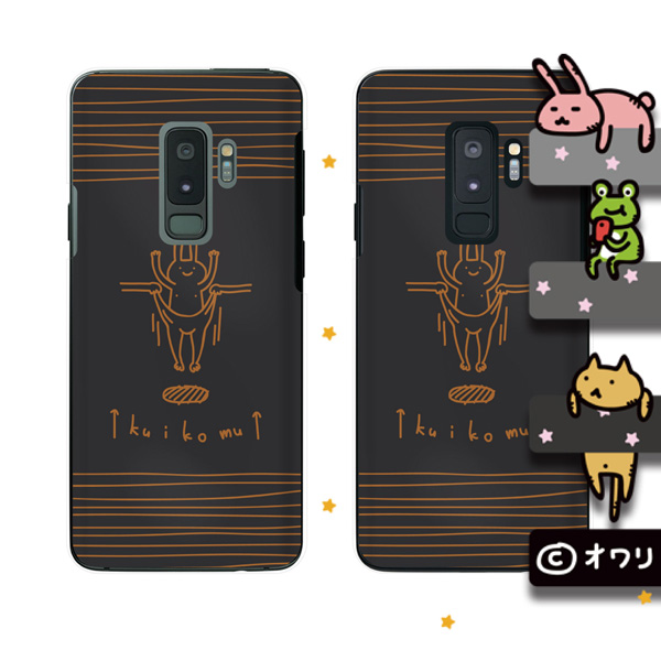Galaxy S9+ (docomo SC-03K / au SCV39) スマホ ケース カバー オワリ 「ウサギに食い込む」 ブラック