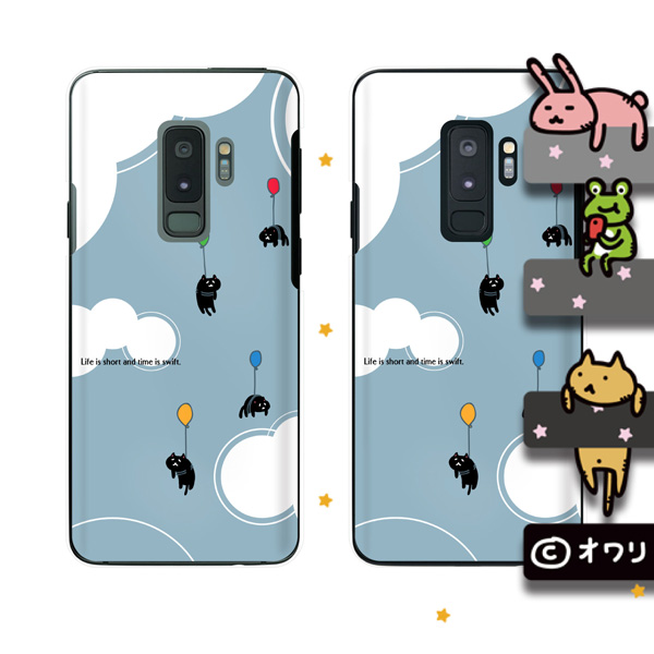 Galaxy S9+ (docomo SC-03K / au SCV39) スマホ ケース カバー オワリ 「ネコ風船」 グレー