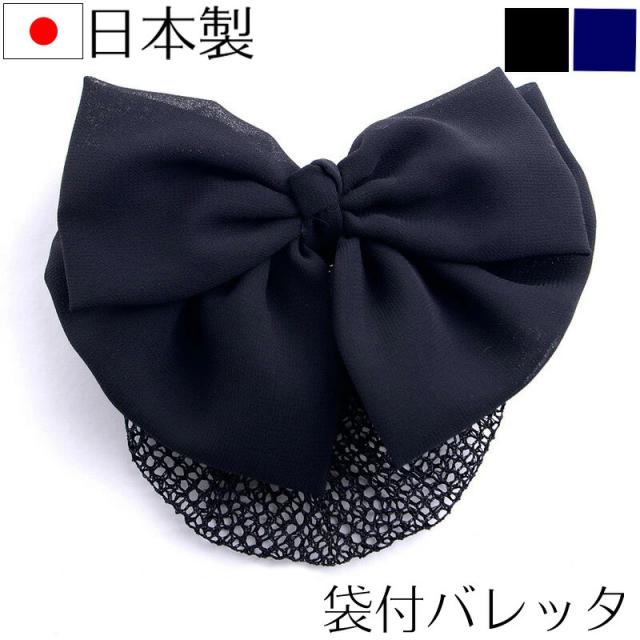 シフォンリボンバレッタ ネット付 袋付 日本製ヘアアクセサリー 入学式 卒業式 お受験 冠婚葬祭