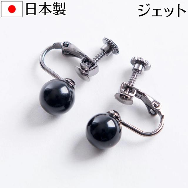 8mm天然ジェットイヤリング 日本製 イアリング ブラックフォーマル