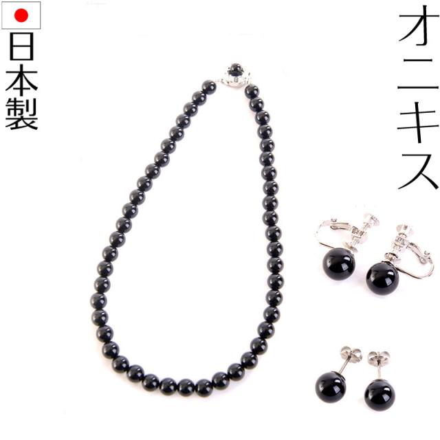 日本製ブラックオニキスネックレス イヤリングorピアス2点セット 8mm丸珠