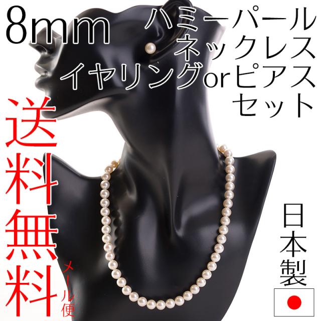 【メール便送料無料】日本製ハミーパール8mmネックレスイヤリングorピアスセット