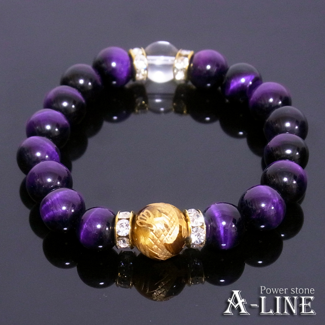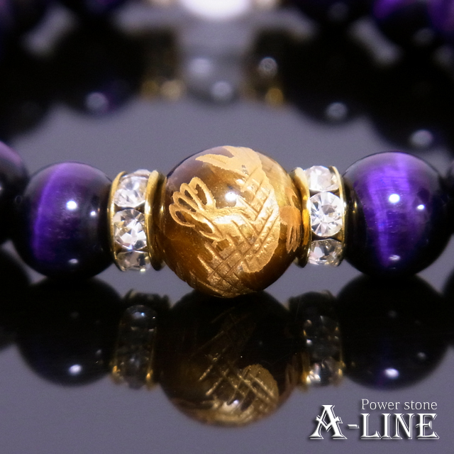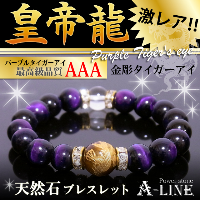 パワーストーン ブレスレット 皇帝龍金彫タイガーアイ12mm&AAAパープルタイガーアイ10mm 金運UPに PW-3337