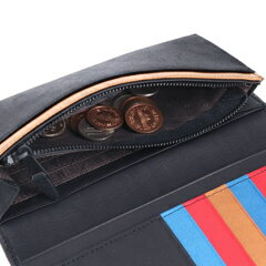外側はスタンダードでシンプルに、中は遊び心を持たせたカラフルなカラーリングに仕上げた長財布。