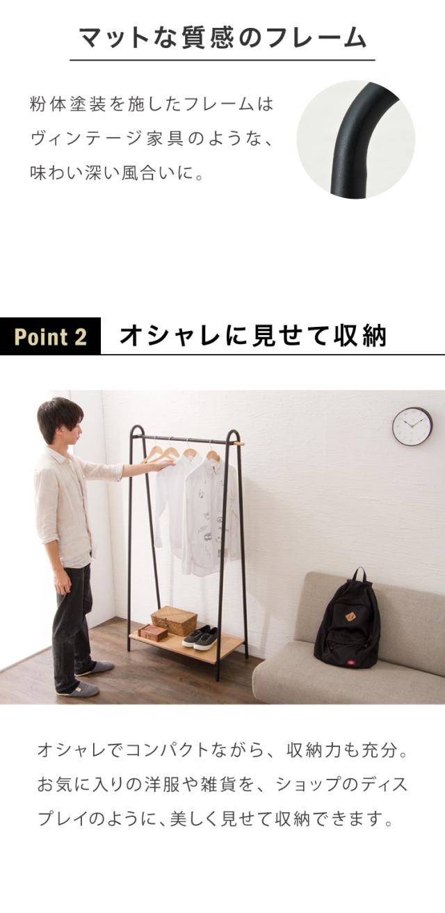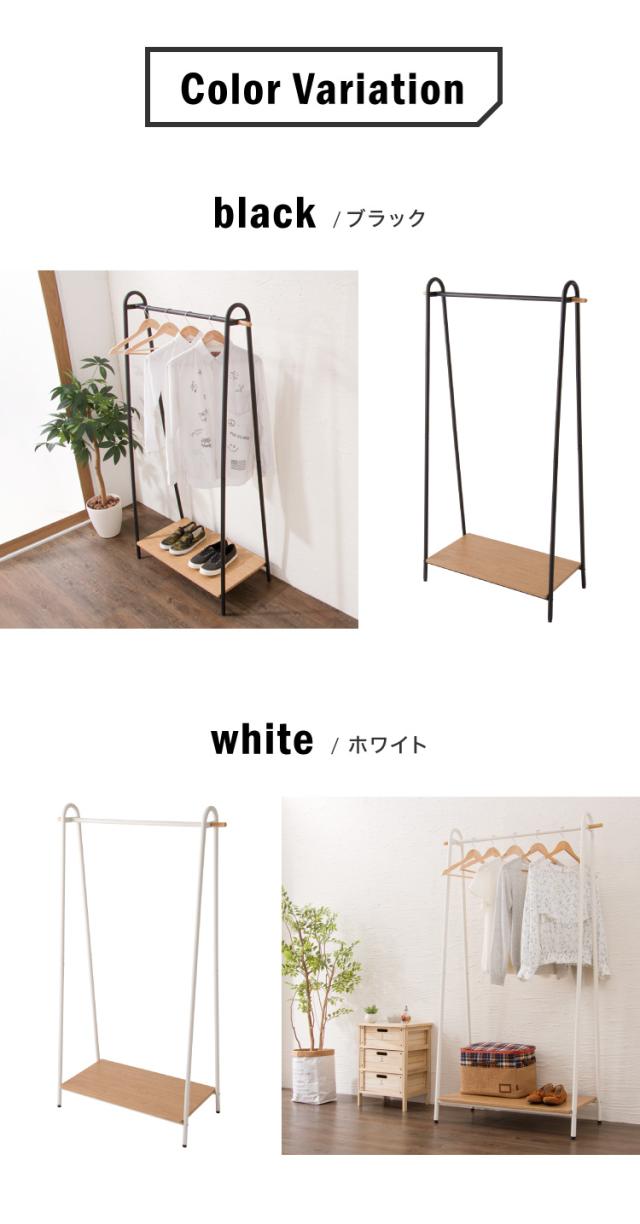 ハンガーラック おしゃれ 幅91cm 奥行46cm 高さ159cm ワイドAタイプ 棚付き 組立式 ブラック ホワイト ナチュラル シンプル コートハンガー 衣類収納 洋服掛け 玄関 スリム コンパクト 【送料無料】