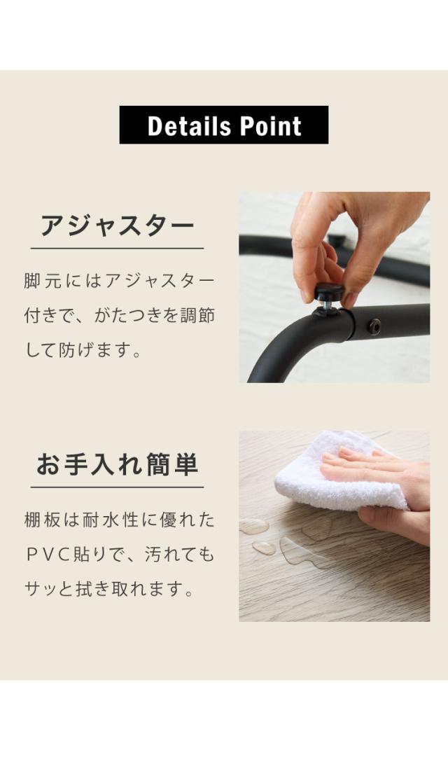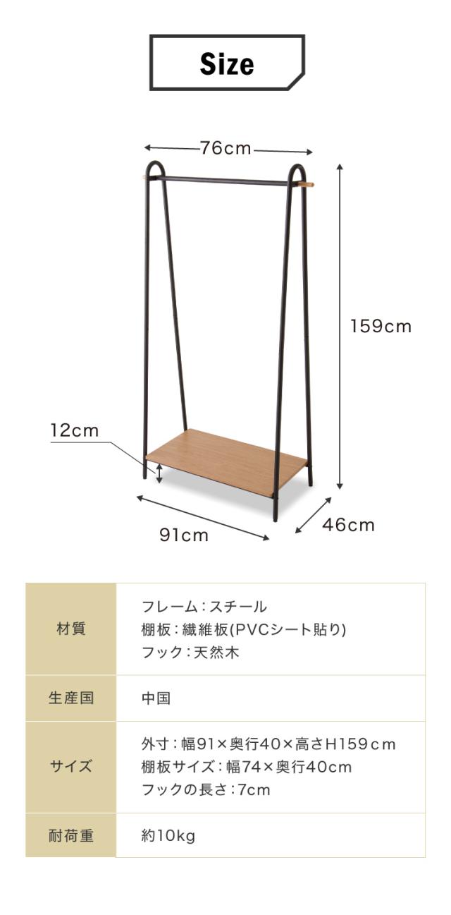 ・材質 スチール 棚板/繊維板(PVCシート貼り) フック/天然木