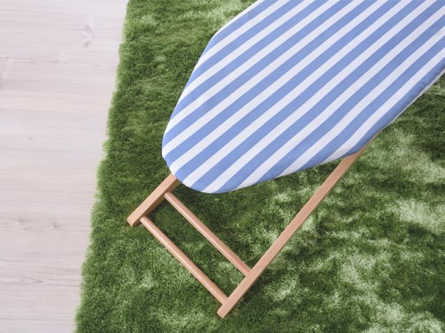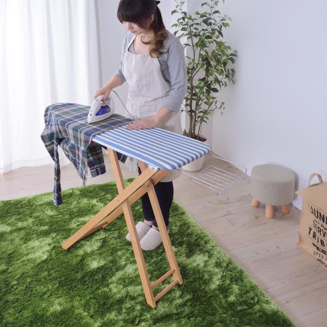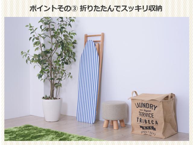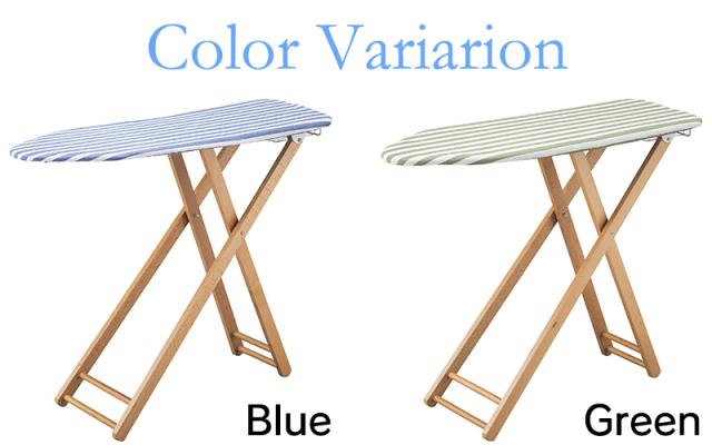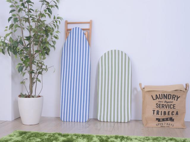 ■淡く爽やかな色のストライブ柄と柔らかいイメージの天然木がマッチしたアイロン台。