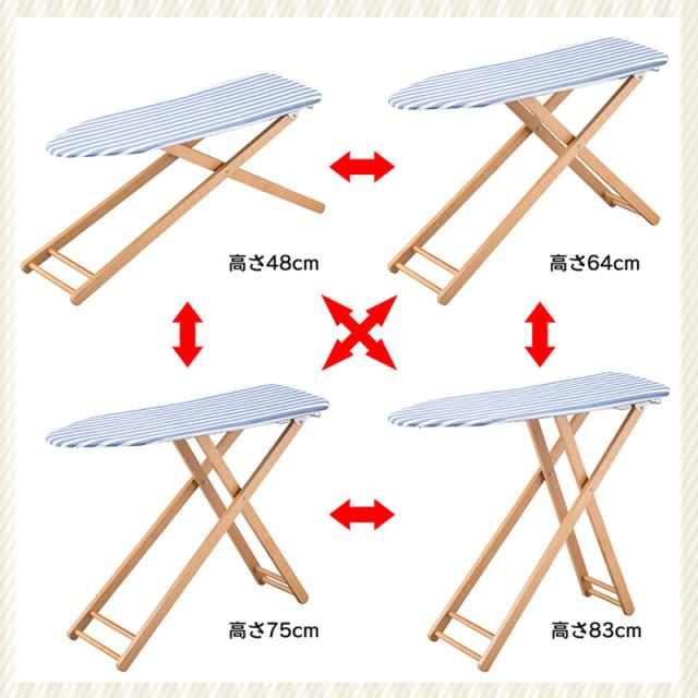 ■高さを48cm、64cm、75cm、83cmの4段階に調節できるので、自分の好みの高さでアイロン掛けができます。