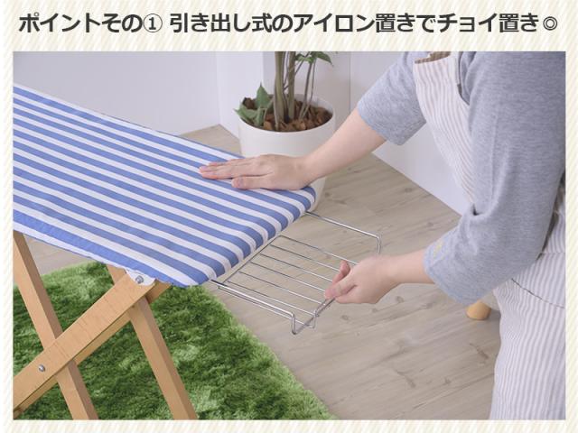 ■横に収納できるアイロン置きがついているので、かけている途中にちょっと置きたい時に便利!