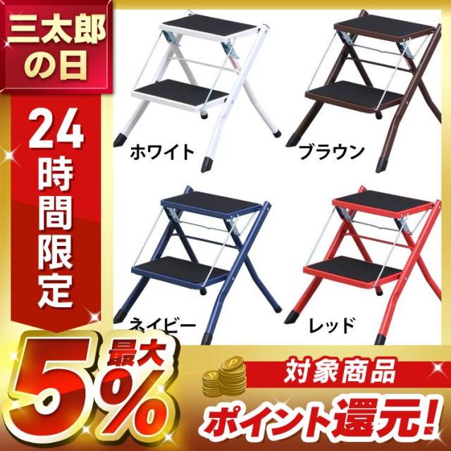 折りたたみ 2段 踏み台 耐荷重 約100kg 滑り止め付 幅広設計 持ち手 脚先グリップ 安定性 コンパクト収納 室内 簡易スツール ディスプレイラック キッチン リビング 折りたたみステップ 折りたたみ踏み台 ステップ台 折り畳み ステップ KC-7020 *